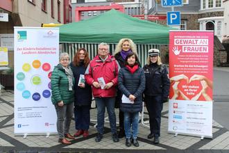 Am 24.11.2023 engagierten sich die Mitglieder der lokalen Arbeitsgruppe „Opferschutz“ auf dem Betzdorfer Wochenmarkt und warben mit Einkaufswagenlösern dafür, sich solidarisch zu zeigen und gemäß dem Motto „Zuschlagen? Nur bei Rabatten!“ ein Zeichen gegen Gewalt an Frauen zu setzen.