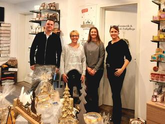 Stadtbürgermeister Benjamin Geldsetzer (li.) und Stefanie Stieler die 2. Vorsitzende der Aktionsgemeinschaft Betzdorf e.V. (re.) begrüßten Katja Hornickel (2.v.l.) und Nadine Pecere (3.v.l.) in ihrem neuen Ladenlokal in Bruche.