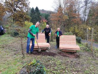 Mit einer Abzweigung der Wanderwege in Alsdorf Richtung Steinerother Tal war auch schnell ein optimaler Aufstellplatz für die neuen Pausenflächen gefunden. Hier bauten Peter Imhäuser und mehrere Genossenschaftsmitglieder die Liegebänke auf. Die Haubergsgenossenschaft Alsdorf-Alsberg wird außerdem über die Installation hinaus die nachhaltige Pflege der Sofas übernehmen.