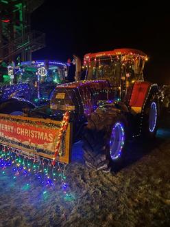Wie angekündigt, war der Lichterzug ein TOP-Event: Mit 55 Fahrzeugen war der Zug schon exakt doppelt so groß wie bei der Premiere im vergangenen Jahr. Und alle Fahrzeuge waren mit viel Aufwand und Liebe zum Detail kreativ und phantasievoll mit Lichterketten dekoriert und viele mit weihnachtlicher Zusatzausstattung geschmückt. Zu den über 50 Traktoren hatten sich zwei Mega-Trucks und ein Oldtimer Unimog gesellt, die dem Zug einen besonderen Akzent verliehen.