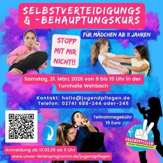 Der sechsstündige Workshop bietet eine spielerische und effektive Einführung in das Thema Selbstbehauptung und Selbstverteidigung. Die Mädchen lernen dabei Karate „Trittkicks“ und das „sanfte Fallen“ (Abrollen des Körpers auf Matten) sowie verschiedene Selbstverteidigungstechniken, um sich aus dem „Schwitzkasten“ oder einer Umklammerung zu befreien. Neben den aktiven Körperübungen wird auch ein Selbstbehauptungstraining durchgeführt. In Gruppenspielen lernen die Teilnehmerinnen, Teamspirit zu entwickeln und als Gruppe knifflige Aufgaben zu lösen. Der Workshop soll insbesondere dazu beitragen, das Selbstbewusstsein der Mädchen zu stärken, eigene Handlungsmöglichkeiten zu entwickeln und vor allem, mit Gleichaltrigen viel Spaß zu haben. Die Veranstaltung wird von den Jugendpflegen der Verbandsgemeinde Kirchen und Betzdorf-Gebhardshain organisiert und von der erfahrenen Karateka Claudia Eich vom Karateclub Puderbach geleitet.