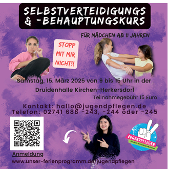 Der sechsstündige Workshop bietet eine spielerische und effektive Einführung in das Thema Selbstbehauptung und Selbstverteidigung. Die Mädchen lernen dabei Karate-„Trittkicks“ und das „sanfte Fallen“ (Abrollen des Körpers auf Matten) sowie verschiedene Selbstverteidigungstechniken, um sich aus dem „Schwitzkasten“ oder einer Umklammerung zu befreien. Neben den aktiven Körperübungen wird auch ein Selbstbehauptungstraining durchgeführt. In Gruppenspielen lernen die Teilnehmerinnen, Teamspirit zu entwickeln und als Gruppe knifflige Aufgaben zu lösen. Der Workshop soll insbesondere dazu beitragen, das Selbstbewusstsein der Mädchen zu stärken, eigene Handlungsmöglichkeiten zu entwickeln und vor allem, mit Gleichaltrigen viel Spaß zu haben. Die Veranstaltung wird von den Jugendpflegen der Verbandsgemeinden Kirchen und Betzdorf-Gebhardshain organisiert und von der erfahrenen Karateka Claudia Eich vom Karateclub Puderbach geleitet.