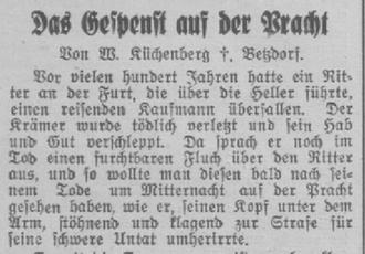 Der 1935 offenbar schon verstorbene W. Küchenberg, der diese haarsträubende Story einst aufschrieb, ist heute leider unbekannt. Vielleicht hatte er etwas mit dem Buchbinder Peter Küchenberg an der Hellerbrücke in der Poststraße zu tun? Möglich wäre es … (GB)