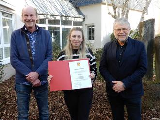 Nach einem erfolgreich absolviertem Grundlehrgang und bestandener Prüfung an der Akademie für Personenstandswesen in Bad Salzschlirf wurde jetzt Emma Berndt von Bürgermeister Helmut Stühn offiziell zur Standesbeamtin für den Standesamtsbezirk Daaden-Herdorf bestellt.