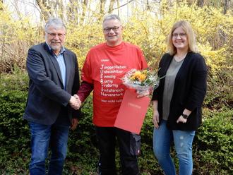 Der Verwaltungschef wünschte seinem geschätzten Mitarbeiter weiterhin viel Gesundheit und Schaffenskraft. Für die Kolleginnen und Kollegen kamen herzliche Glückwünsche von Lena Hombach, der Vorsitzenden des Personalrats.