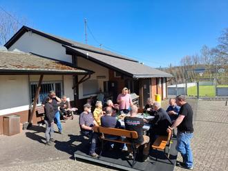 Nach und nach trafen dann alle ca. 40 Personen wieder am Container ein, entledigten sich ihrer Last, um dann am Sportlerheim ihren verdienten Lohn in Form von Wurst- und belegten Brötchen mit Getränken in Empfang zu nehmen. Aufgrund des schönen Wetters gab es dann noch ein gemütliches Beisammensein.
