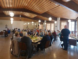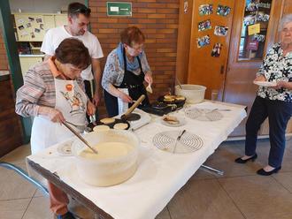An diesem Nachmittag wurde nicht Kuchen und belegte Brote gereicht. Das Team hatte 5 kg "Blätterteig " vorbereitet und als die "Blätzedeckel" heiß genug waren, fingen Gretel und Christine an zu backen. Die "Plätze " fanden reisenden Absatz und so nahm sich der eine oder andere noch welche mit nach Hause. Es war ein anstrengender und erfolgreicher Tag.