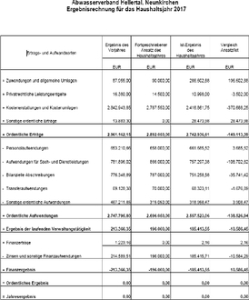 I. Aufgrund des § 65 des Gesetzes über Wasser- und Bodenverbände (Wasserverbandsgesetz WVG) vom 12.02.1991 (BGBL. S. 405) in Verbindung mit § 27 der Verbandssatzung vom 24.01.2013 und des § 96 Abs. 2 der Gemeindeordnung für das Land Nordrhein-Westfalen in der Fassung der Bekanntmachung vom 14.07.1994 (GV NW S. 666), zuletzt geändert durch Artikel 1 des Gesetzes vom 13.04.2022 (GV. NRW S. 490) hat die Verbandsversammlung den vom Rechnungsprüfungsausschuss unter Beauftragung des Wirtschaftsprüfungsunternehmens Ohrndorf Revision GmbH geprüften und mit einem uneingeschränkten Bestätigungsvermerk versehenen Jahresabschluss 2017 durch Beschluss festgestellt und dem Verbandsvorsteher Entlastung erteilt.