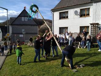 | • | Perfektes Frühlingswetter mit Sonne und blauem Himmel herrscht am 30. April beim Maibaumaufstellen im Dorfpark. Für die zahlreichen Besucher gibt es leckere Würstchen und gekühlte Getränke. Am Ende können 715 Euro für die Neugestaltung des Außenbereiches vor dem Dorfgemeinschaftshaus bzw. der Kommunalen Kindertagesstätte gesammelt werden. |