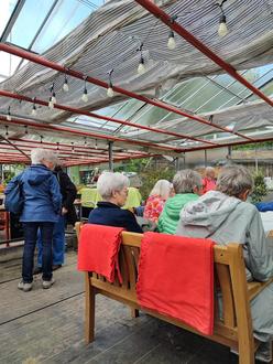 Frau Massow begleitete die Landfrauen durch das Gewächshaus und erläuterte an jedem Tisch jede Pflanze – wann, wie, wo man sie am besten pflanzt und wie man sie in der Küche einsetzt. Es war ein lehrreicher Nachmittag in einer besonderen Atmosphäre.