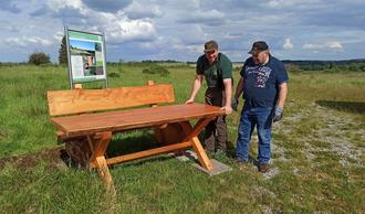 Seit dieser Woche befindet sich in dem frei zugänglichen Teil des früheren Truppenübungsplatzes Stegskopf auf dem Höllenkopf eine Ruhebank. Die Bank wurde von der Ortsgemeinde Emmerzhausen im Rahmen einer Sponsoringaktion aus Mitteln der EAM - Energie aus der Mitte beschafft und mit Zustimmung der DBU Naturerbe GmbH von der Fa. Lindinger aus Daaden dort aufgestellt.
