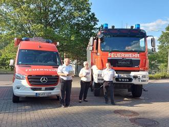 Am 14.06.2023 konnten der ELW 1 (Einsatzleitwagen 1) und das TLF 4000 (Tanklöschfahrzeug 4000) endlich offiziell der Feuerwehr Herdorf übergeben werden. Die Indienststellung des TLF hatte sich aufgrund technischer Mängel seitens des Aufbauherstellers bis zu deren Beseitigung verzögert, beim ELW war der angestiegene Anschaffungspreis ursächlich. Die ursprünglich veranlagten und im Haushaltsplan genehmigten ca. 115.000 - 120.000 € konnten aufgrund der angezogenen Preise seitens der Aufbauhersteller nicht eingehalten werden. Damit sich die Feuerwehr den deutlich gewachsenen Anforderungen stellen kann, wurde bei der Beschaffung der erstellte Brandschutzbedarfsplan konsequent umgesetzt. Der bisher genutzte ELW war nur ein „gefuddeltes Fahrzeug“, jetzt kann die Einsatzleitung optimal unterstützt werden und im Bedarfsfall wird auch zur überörtlichen Hilfe ausgerückt.