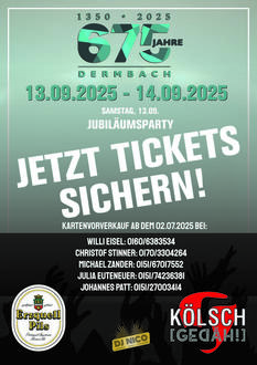 Am Samstag, 13.09.2025, lädt Dermbach zur großen Jubiläumsparty in der Mehrzweckhalle ein – mit Live-Musik von Kölsch Gedäh und DJ Nico!