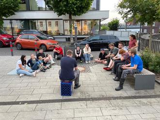 Abschließend setzten wir uns noch zusammen, um den erfolgreichen Abend zu beenden. Die Runde drehte sich um den Grund für unsere jährliche Community-Aktion: Dort, wo wir zuhause sind, Bild dafür zu sein, wie gut unser Gott ist.