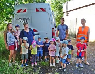 Eines der Highlights war eine Wanderung zum Trinkwasser-Hochbehälter in der Nachbargemeinde Weitefeld. Wassermeister Johannes Heimann von den Verbandsgemeindewerken Daaden erklärte und zeigte allen, woher das Wasser kommt und wie es aufbereitet wird. Die Kinder waren sehr interessiert und stellten sogar einige Fragen, die kindgerecht beantwortet wurden. Alle staunten, wie groß die Anlage ist.