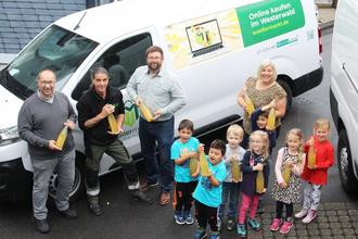 Über eine Spende von insgesamt 500 Flaschen direktgepressten Apfelsaft von der Privatkelterei Junge konnten sich nun die beiden Daadener Kindergärten freuen.