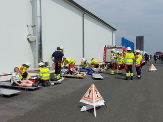 Am Samstag, den 03.08.2024 fand auf dem Gelände des Siegerland-Flughafens Burbach/Lippe die diesjährige Großübung der Feuerwehr Niederdreisbach/Schutzbach und des ASB Düsseldorf mit Unterstützung der Feuerwehr Burbach/Lippe statt. Für die Übung wurden zwei Szenarien vorbereitet. Bei dem ersten Szenario wurde eine PKW-Kollision mit einem Flugzeug und ein Brand im Außenbereich angenommen, beim zweiten ein Brandereignis im Nebenraum eines Lagerraumes simuliert. Aufgabe der Feuerwehren war die Menschenrettung unter Atemschutz und die Brandbekämpfung. Bei beiden Stationen gab es sowohl mehrere Leicht- als auch Schwerverletzte, welche durch den ASB betreut und versorgt wurden. Insgesamt waren ca. 70 Personen an der Übung beteiligt.
