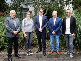 Von links: Bürgermeister Helmut Stühn, Personalratsvorsitzende Lena Hombach, Tobias Friggen, Michael Runkel und Büroleiter Pascal Weyand
