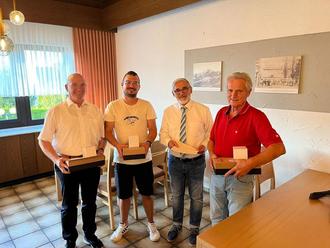 Ortsbürgermeister Buhl (zweiter von rechts) mit den ausgeschiedenen Ratsmitgliedern Lothar Weyand, Nils Gilg und Rüdiger Buhl (von links). Auf dem Bild fehlt Manfred Ebener.
