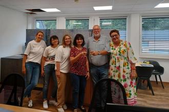 Ihr neues Domizil hat jetzt die Praxis Dr. Kersten Strüder und Barbara Lindenbeck (3. von rechts) in der Betzdorfer Straße 59 in Daaden bezogen. Stadtbürgermeister Walter Strunk nahm dies zum Anlass, das Team in den hellen Räumen zu besuchen. Die Praxis ist jetzt leichter zugänglich und verfügt gegenüber dem bisherigen Standort in der Bahnhofstraße über ein größeres Platzangebot. Der Stadtbürgermeister wünschte einen guten Start und eine erfolgreiche Arbeit. Er freue sich, dass die traditionsreiche Praxis unter verbesserten Rahmenbedingungen auch weiterhin für die Versorgung der zahlreichen Patientinnen und Patienten tätig sein wird. Mit dabei war auch Brigitte Mudersbach (rechts), die Eigentümerin des ehemaligen Bürogebäudes, in dem sich bereits weitere Arztpraxen befinden.