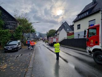 Ein Wohnhaus ist am frühen Morgen in der Saynischen Straße in Daaden vollständig ausgebrannt. Seit kurz nach vier sind Feuerwehr, Rettungsdienst und Polizei mit einem Großaufgebot im Einsatz gewesen. Beim Eintreffen der ersten Kräfte stand das Gebäude bereits in Vollbrand.