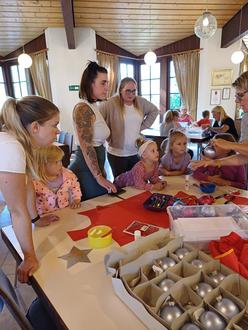 Die Kinder waren so kreativ das jede Menge tolle Sachen: aus großen und kleinen Bügelperlen, Papierfaltsterne, Sterne aus Pappe, bemalte Weihnachtskugeln, Schneemänner und bunte Tannenzapfen. Über 20 Kinder mit ihren Eltern/ Großeltern aus der Kita und der Grundschule hatten jede Menge Spaß dabei. Die Kinder werden am 22.11 die Tannenbäume schmücken.