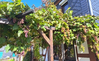 Durch eine Einwohnerin wurde der Ortsbürgermeister neulich auf deren reichhaltiges Weintraubenvorkommen hingewiesen. Wie die Bilder belegen, hatten sich die Trauben am Anwesen der Einwohnerin durch die Emmerzhäuser Sonne hervorragend entwickelt.