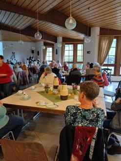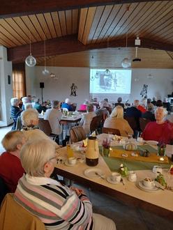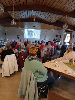 Nach dem Vortrag konnten sich die Gäste am großzügigen Kuchenbüfett und belegte Brote bedienen. An dieser Stelle nochmals ein Dankeschön an die Kuchenbäcker. Nach dem Kaffee trinken und regen Gespräche zeigte Michael Bender in einem Diavortrag Bilder von Biersdorf und Umgebung. Hier wurden Erinnerungen geweckt. Es war ein sehr schöner Vortrag. Alle die zu diesem schönen Nachmittag beigetragen haben ein dickes Dankeschön.