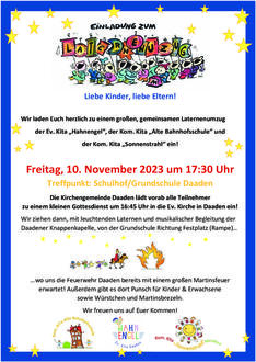 Wir laden Euch herzlich zu einem großen, gemeinsamen Laternenumzug