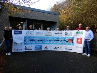 Bürgermeister Helmut Stühn bedankte sich im Namen der Verbandsgemeinde recht herzlich bei allen beteiligten Unternehmen für ihre wichtige Unterstützung und Verbundenheit mit dem Daadener Hallenbad. „Ihr Beitrag für die Gemeinschaft hilft uns, die Kosten für das Hallenbad zu schultern,“ betonte er in einer kurzen Rede zur feierlichen Bannerübergabe.