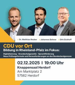 Auch mit dabei sind Johannes Behner, selber Lehrer am Gymnasium und Kandidat für die Landtagswahl im März 2026 und Dirk Eickhoff, über 4 Jahre lang Vorsitzender der Elternpflegschaft an einer weiterführenden Schule in NRW und 8 Jahre Schulelternsprecher an der Grundschule in Herdorf.