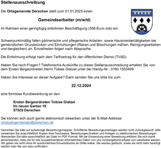 Sie können sich auch gerne elektronisch bewerben unter der E-Mail-Adresse ortsbuergermeister@derschen.de