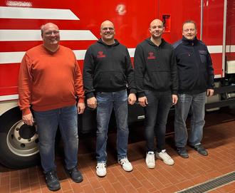 Stellv. Wehrleiter Markus Löhr, Wehrleiter Matthias Theis, Steffen Link (stellv. Wehrführer Herdorf), Felix Krah (Wehrführer Herdorf), Tim Pieck (stellv. Wehrführer Herdorf)