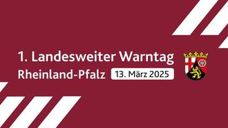 Am 13. März findet in Rheinland-Pfalz zum ersten Mal ein gemeinsamer Warntag statt. Ziel ist es, die Warnsysteme zu testen, die Bevölkerung für Warnmeldungen zu sensibilisieren und die Abläufe im neuen Lagezentrum Bevölkerungsschutz im Landesamt für Brand- und Katastrophenschutz (LfBK) in Koblenz zu erproben. Die Warnung wird gegen 10 Uhr über das Modulare Warnsystem (MoWaS) im Lagezentrum Bevölkerungsschutz ausgelöst. Dabei kommen verschiedene Warnmittel zum Einsatz, darunter Cell Broadcast sowie Warn-Apps wie NINA und KATWARN.