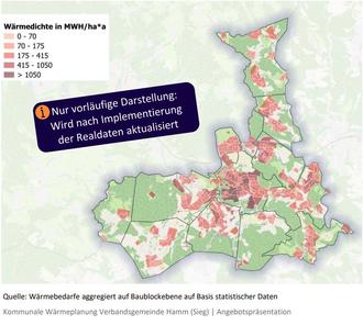 Präsentationsauszug: Erhebung und kartografische Darstellung der Versorgungsstrukturen (Netze, Speicher…), Heizungsanlagen sowie Wärmeverbräuche/-bedarfe (inkl. Wärmedichten, Wärmeliniendichten etc.) in der VG Hamm (Sieg) erfolgt im Rahmen einer Bestandsanalyse.