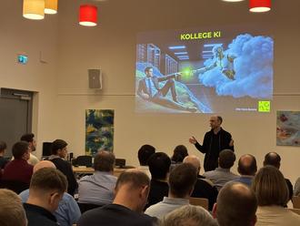 Die Impulsgeber für den Abend waren Markus Bläser, Geschäftsführer im Bereich Software-Entwicklung, und Timur Sereflioglu, tätig als Consultant in der KI-Forschung und Vorstandsmitglied im zukunftsraiff.-Verein. Beide präsentierten sehr anschauliche und kurzweilige Vorträge, die nicht nur Studien und Statistiken, sondern auch Beispiele aus ihrem Arbeitsalltag miteinbanden.