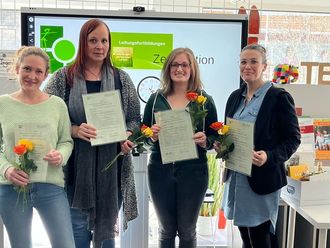 Übergabe der Zertifikate an die Teilnehmerinnen nach erfolgreichem Abschluss ihrer Leitungsqualifizierung. Von links: Christine Lisku, Sabine Schreiner, Christina Krüger, Marion Schweigert.