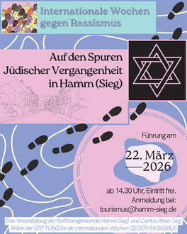 Im Rahmen der Internationalen Wochen gegen Rassismus lädt die Raiffeisengemeinde Hamm (Sieg) und der Caritasverband Rhein-Sieg e.V. zu einer besonderen Führung durch die Geschichte der jüdischen Gemeinde ein.