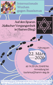 Im Rahmen der Internationalen Wochen gegen Rassismus lädt die Raiffeisengemeinde Hamm (Sieg) und der Caritasverband Rhein-Sieg e.V. zu einer besonderen Führung durch die Geschichte der jüdischen Gemeinde ein.