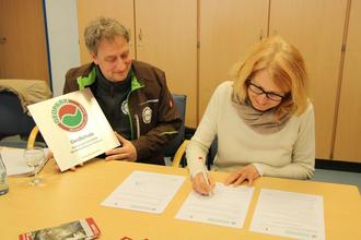 Offiziell wurde die Kooperationsvereinbarung von Direktorin Brambach-Becker unterzeichnet. Michael Volkwein vom Geopark sieht 's mit Freude.