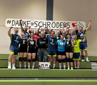 In einer Doppelveranstaltung in der Großsporthalle in Hamm verabschiedeten sich die Verbandsliga-Volleyballerinnen und -Volleyballer am vergangenen Wochenende mit vier Siegen aus der Saison und bereiteten so den scheidenden Trainern Julian und Hans-Jürgen Schröder einen gebührenden Abschied. Während die Frauen ihre Saison mit der Vizemeisterschaft veredelten, krönten sich die Männer mit dem Meistertitel.