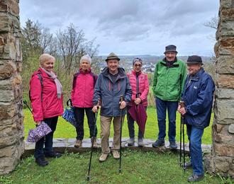 Von Altenkirchen (Heimstraße) aus führte uns ein geschwungener Weg ans Kriegerdenkmal, wo eine kurze Rast eingelegt, die Aussicht auf Altenkirchen genossen und ein Fototermin eingelegt wurde.