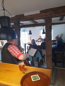 Achtzehn muntere Sängerinnen und Sänger, der Jüngste gerade mal 4 Jahre alt, hatten sich am Palmsonntag im Wirtshaus eingefunden und wurden von Musiker und Sänger Jörg Brück begrüßt.