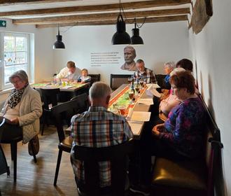 Bei kühlen Getränken und leckeren, herzhaften „Schmankerln“, zubereitet von der Ehefrau des Sängers, Nadya Abu-Higleh-Brück, verbrachte die Gruppe einen schönen musikalischen und geselligen Vormittag. Am Ende wurde der Wunsch nach einer baldigen Wiederholung laut. Jörg Brück bestätigte, dass es bereits Ideen zu weiteren Mitsingkonzerten gebe.