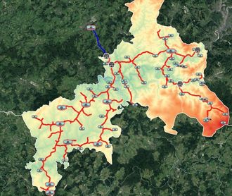 Die „Schlagadern“ der Wasserversorgung im Kreis Altenkirchen. Das Fernleitungsnetz des WKA umfasst 230 Kilometer. Quelle: WKA