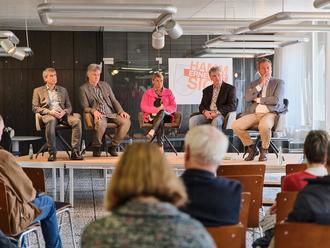 Die unternehmerische Gestaltung von gemeinschaftlichen Regionen war der Hintergrund, um Raiffeisen in den Blick zu nehmen. Im eigens hergerichteten Eingangsbereich des Hermes-Gebäudes fand sich ein Podium ein, das über das Thema „Kulturell statt provinziell“ sowie über die Perspektiven genossenschaftlichen Handelns in der heutigen Zeit sprechen wollte.