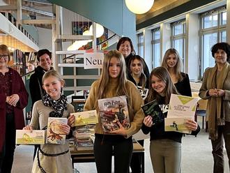 Vor Weihnachten fand in der Bibliothek der Vorlesewettbewerb der Klassen 6 statt. Die vier Klassensieger und vier Zweitplatzierten traten vor die Jury, bestehend aus den Lehrerinnen Karina Fries und Tanja Bornhütter, den Bibliothekarinnen Gabi Hillers und Nadine Schnell sowie den Schülerinnen Destina Cetin und Angelina Hertje (beide MSS 11).