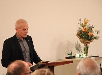 Aus der Verwaltung überbrachte Marcel Ring – der durch einen krankheitsbedingten Ausfall für den Personalrat eingesprungen war – die Glückwünsche der Belegschaft und richtete in Anspielung auf Henrichs Sportbegeisterung mit einer Fußballmetapher seinen Blick auf die vertrauensvolle Zusammenarbeit zwischen Leitung und Personal, die notwendig sei, um die Verwaltung voranzubringen.