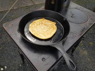 Das man sich damals vom Feld ernährt hat und zum Beispiel Brennnesseln selbst gepflückt und zu Mahlzeiten verarbeitet hat, fanden die Kinder sehr spannend. Sie konnten dann auch zuschauen, wie man auf der „Küchenhexe“ einen Brennnessel-Pfannkuchen backt und diesen probieren.