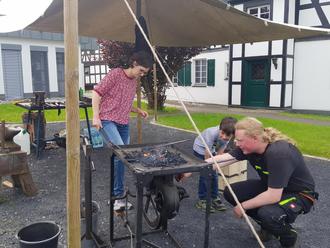 Auch das Arbeiten mit dem heißen Eisen zur Herstellung von Werkzeugen um das Feld zu beackern machte den Kindern richtig Spaß. Natürlich durften sie beim Schmied selbst Hand anlegen und beispielsweise einen Nagel schmieden.